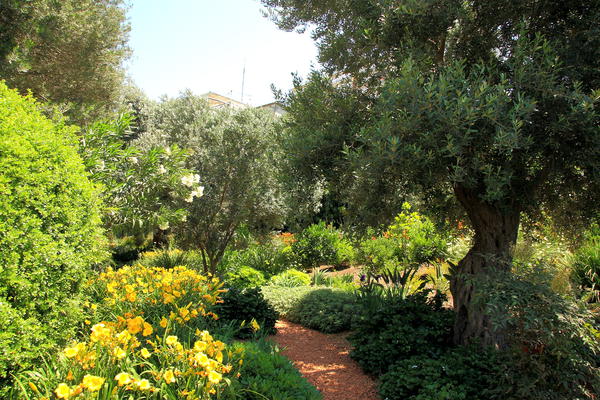 Haifa. Mt Carmel. At the bottom of Mt Carmel, a small garden to the left. |